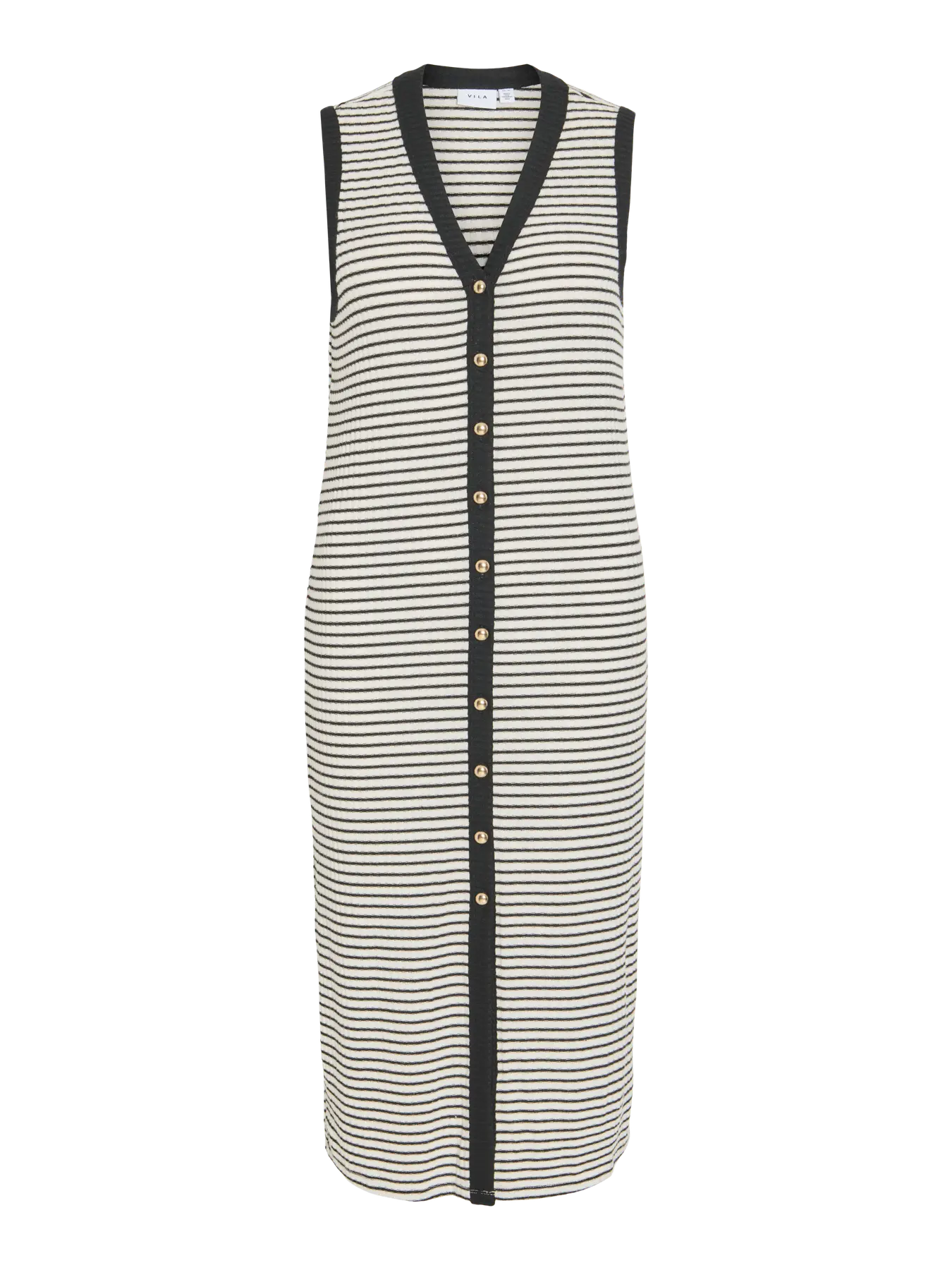 VILA JOLIE V-NECK MIDI DRESS IN BLACK STRIPE