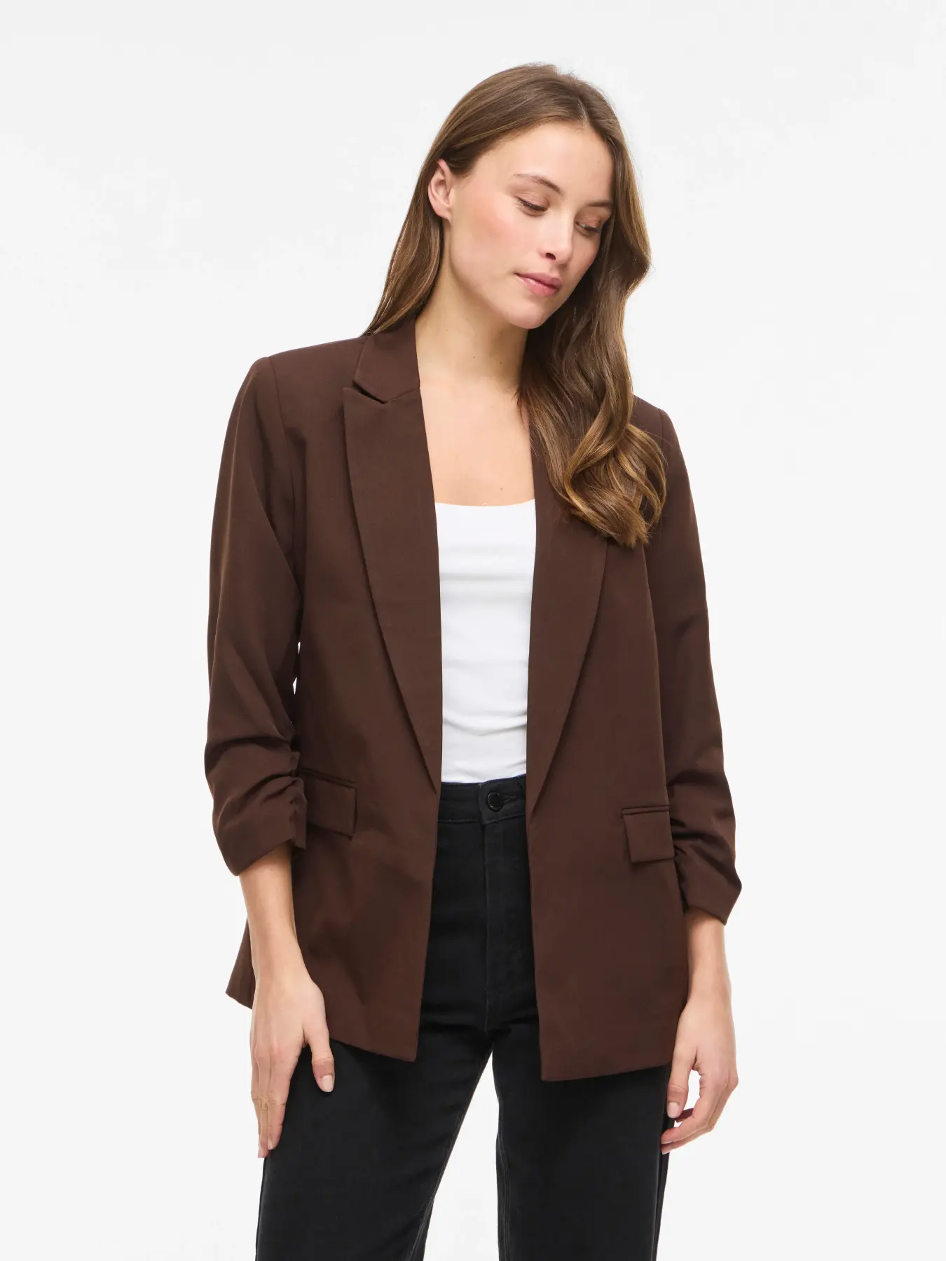 VILA JUNE 3/4 SLEEVE BLAZER IN COFFEE BEAN