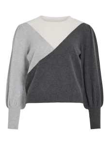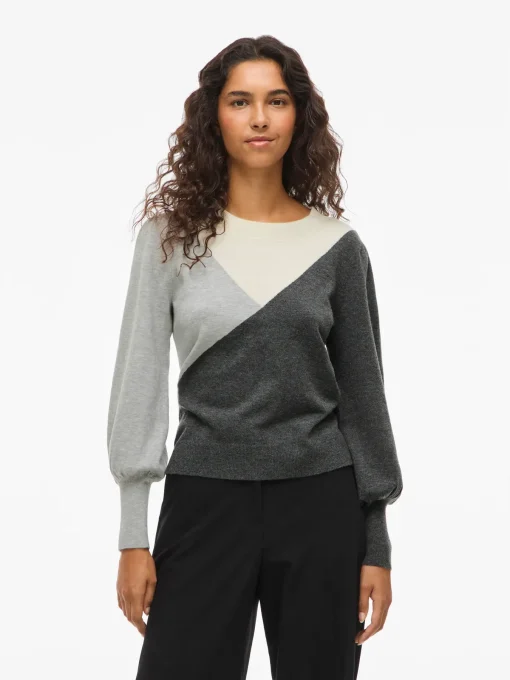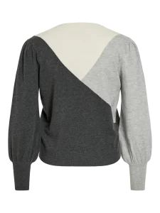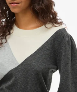 VILA KERRY KNIT TOP IN DARK GREY / LIGHT GREY / WHITE