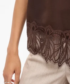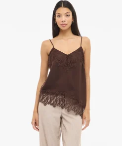 VILA LEA LACE STRAP TOP IN COFFEE BEAN