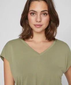 VILA MODALA V-NECK TEE IN OIL GREEN COLOUR