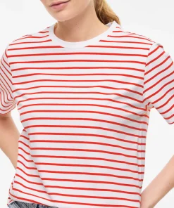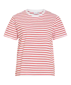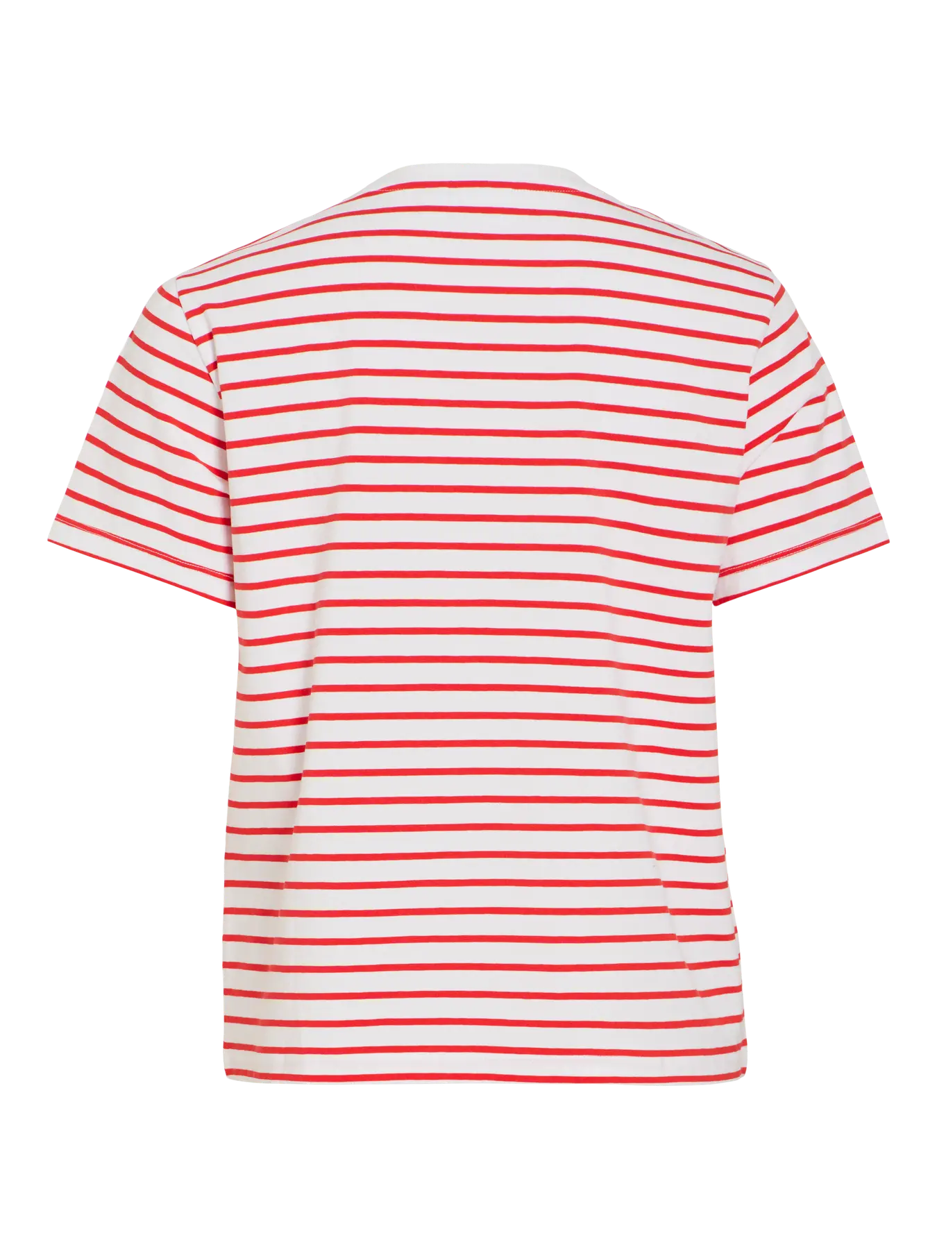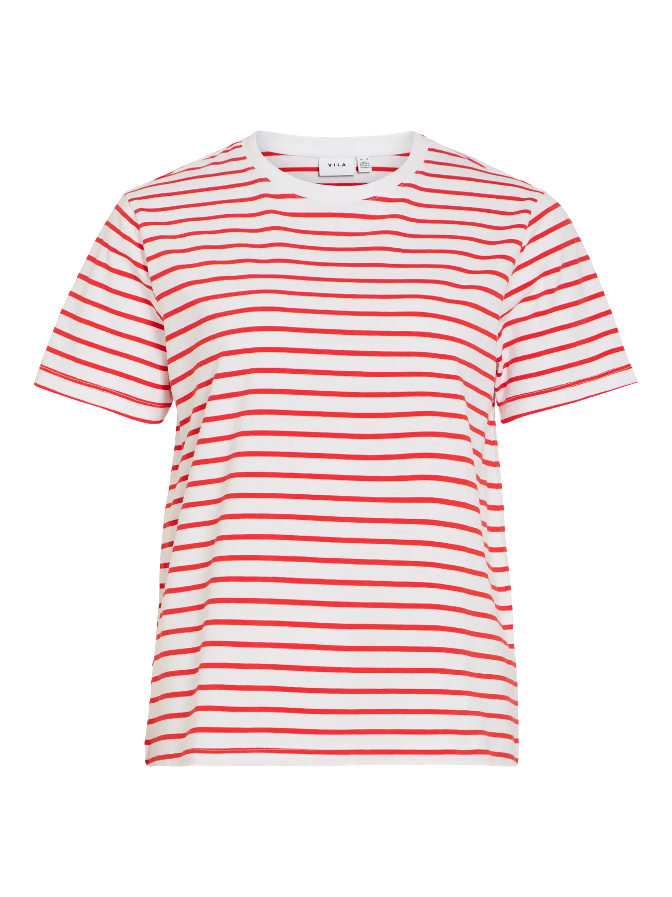 VILA NORA T-SHIRT IN WHITE / RED STRIPE