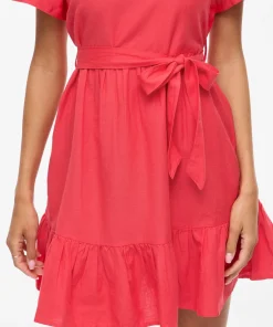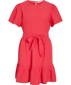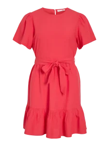 VILA PRISSILA O-NECK SHORT DRESS IN RED