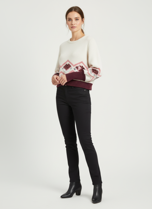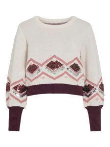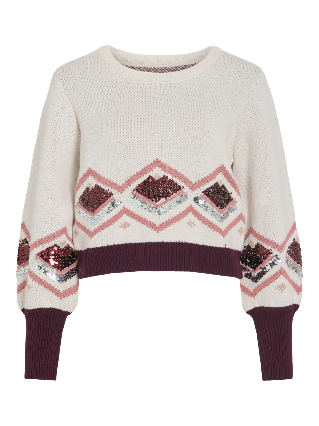 VILA RAKLA PULLOVER IN FIG AND OFF WHITE WITH SEQUINS
