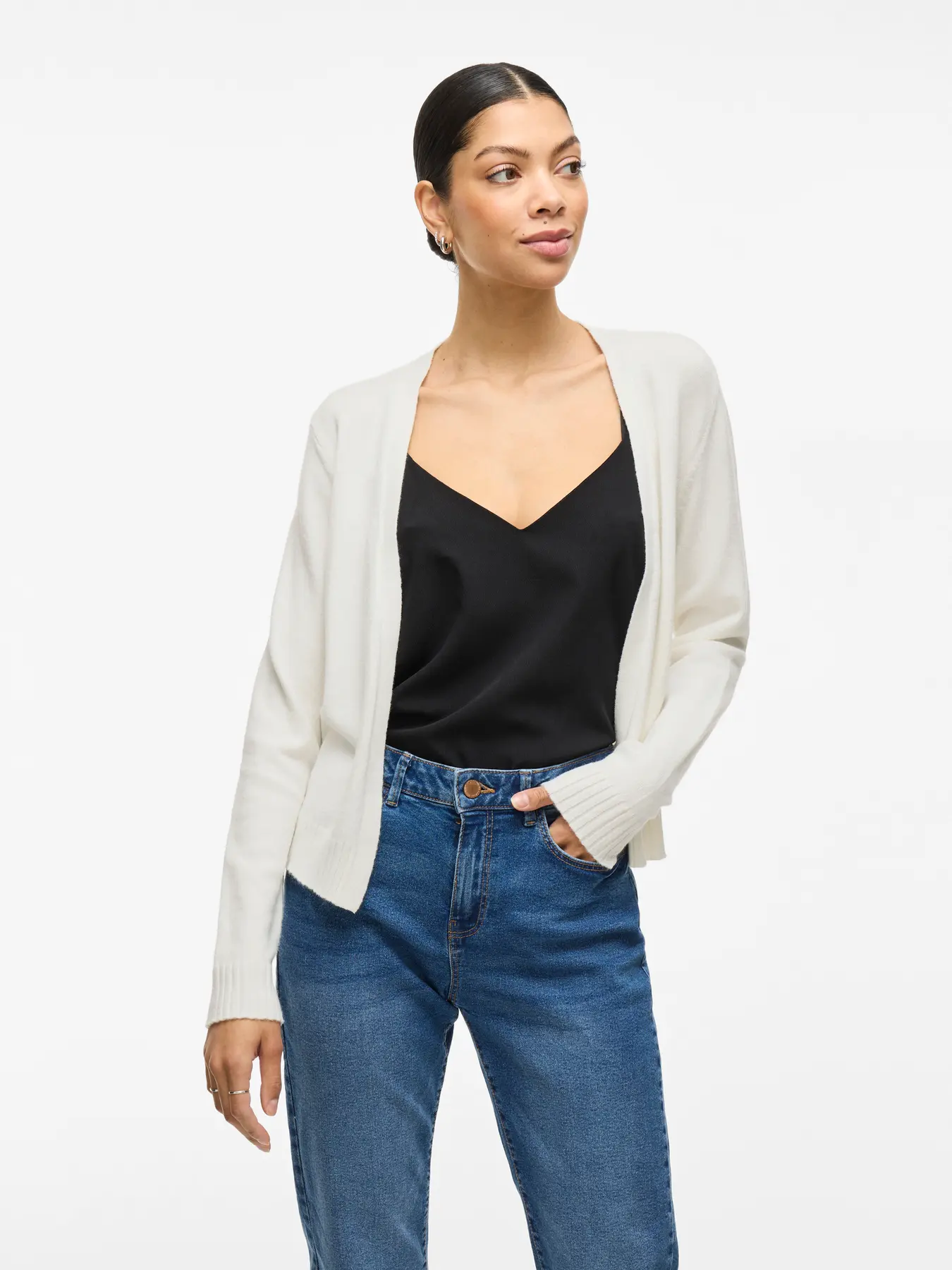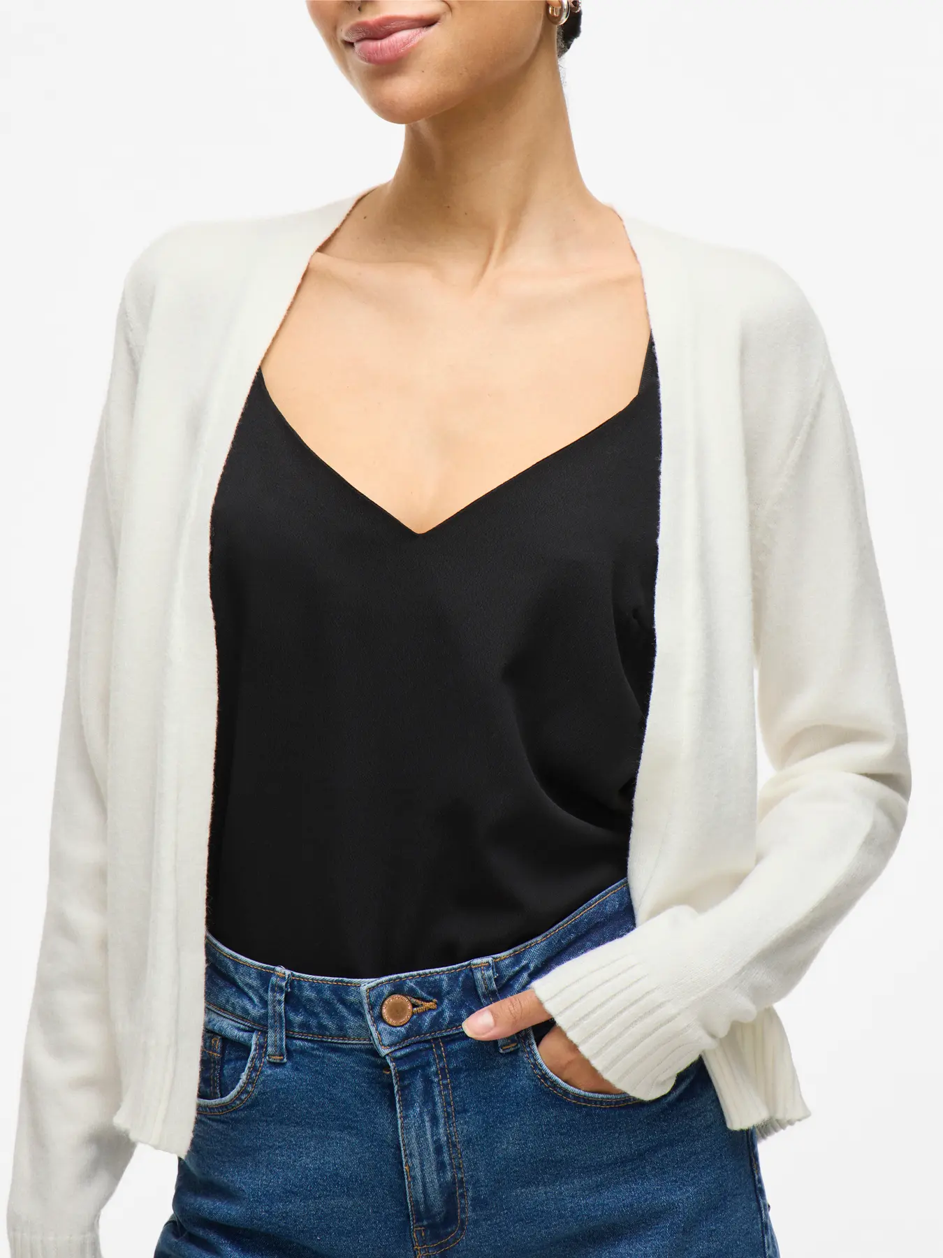 VILA RIL SHORT CARDIGAN IN WHITE ALYSSUM