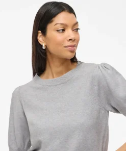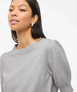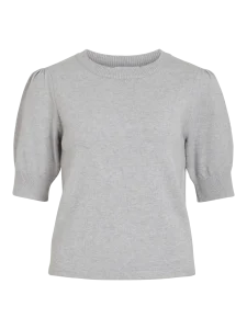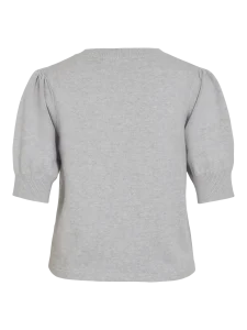 VILA RIL SHORT SLEEVE KNIT TOP IN LIGHT GREY MELANGE