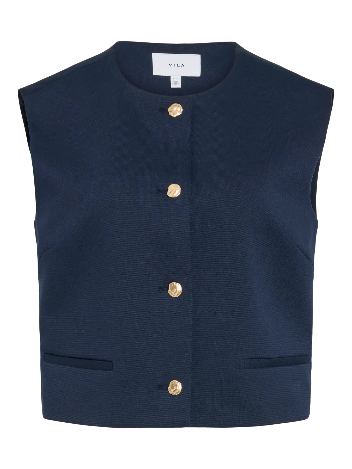VILA TILDA SLEEVELESS VEST TOP WITH GOLD BUTTONS
