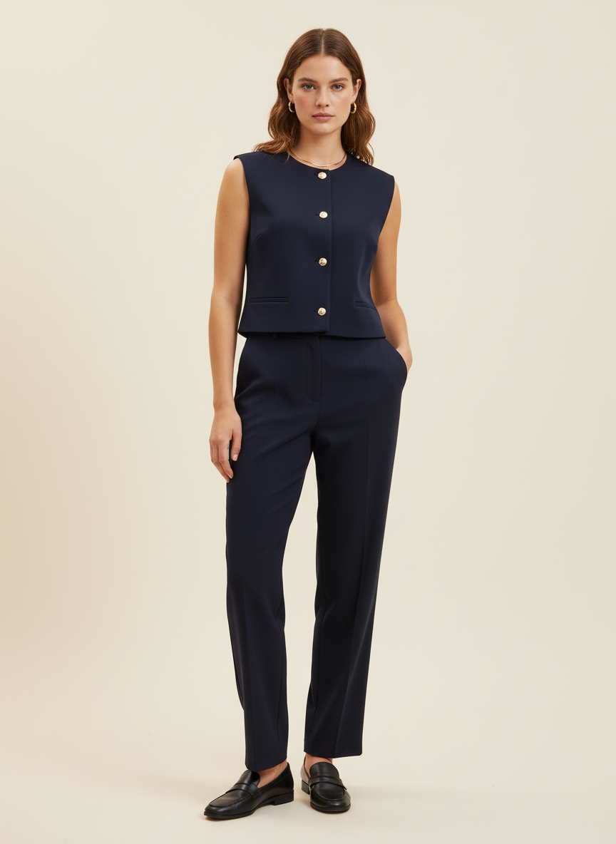 Transform your wardrobe with this tailored item to create that effortless, chic look. Jersey fabric is warm, flexible, stretchy, and very insulating, making it a popular choice for layers worn close to the body. – Product Type : Vest – Closing : Button fastening – Extra details : Button detail