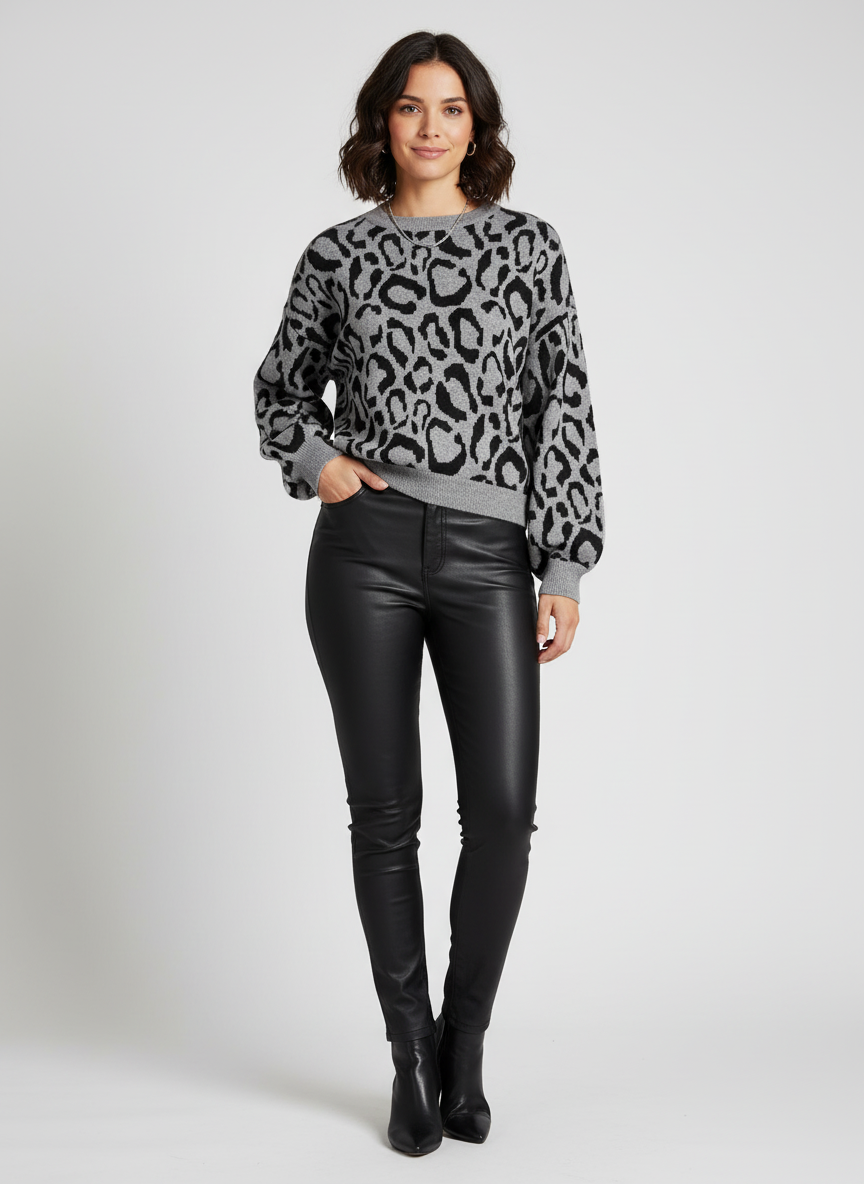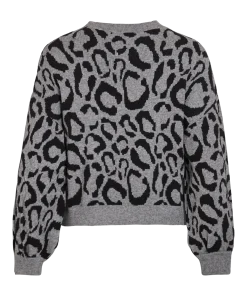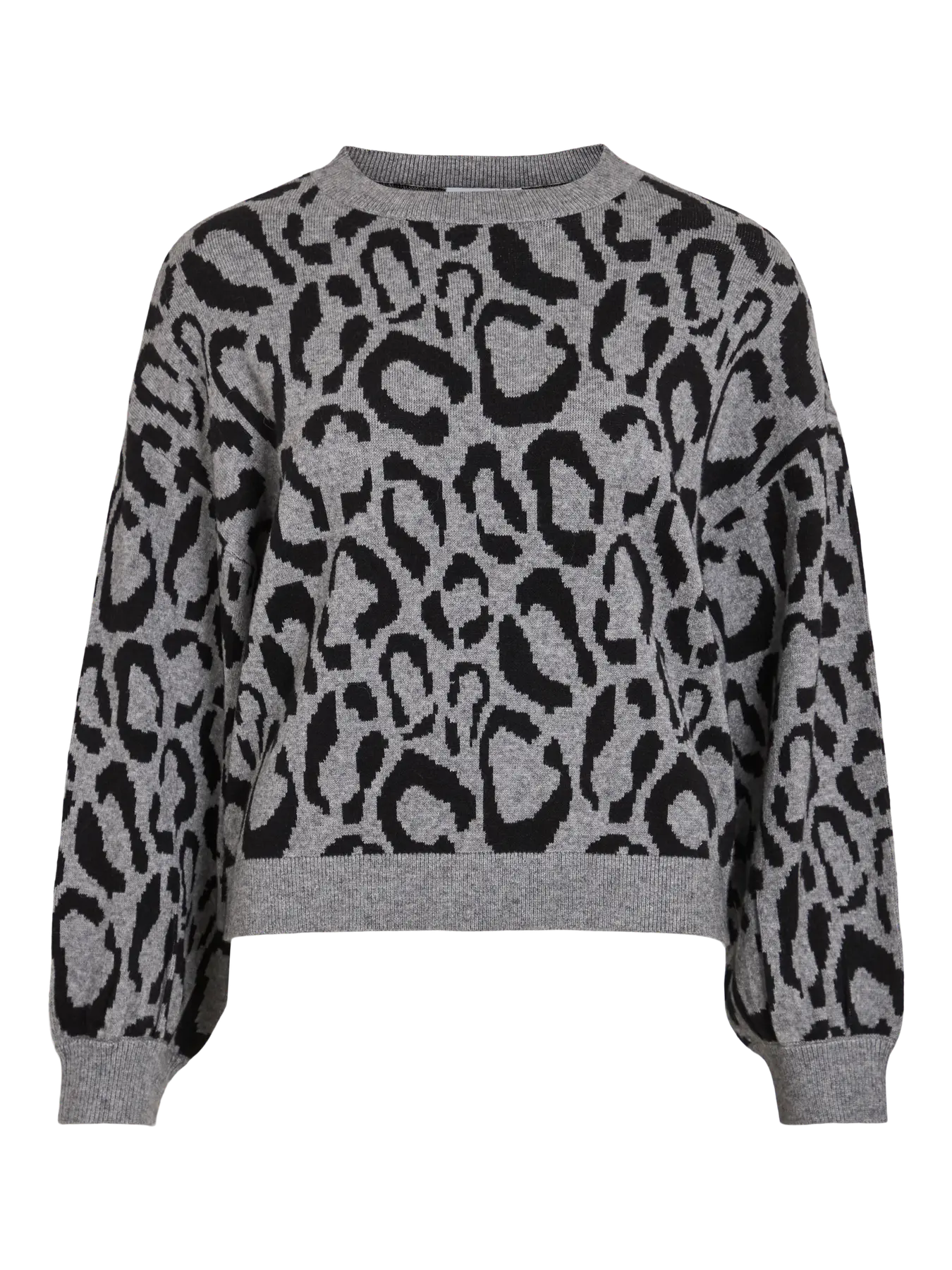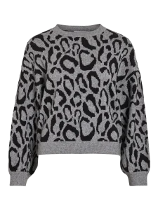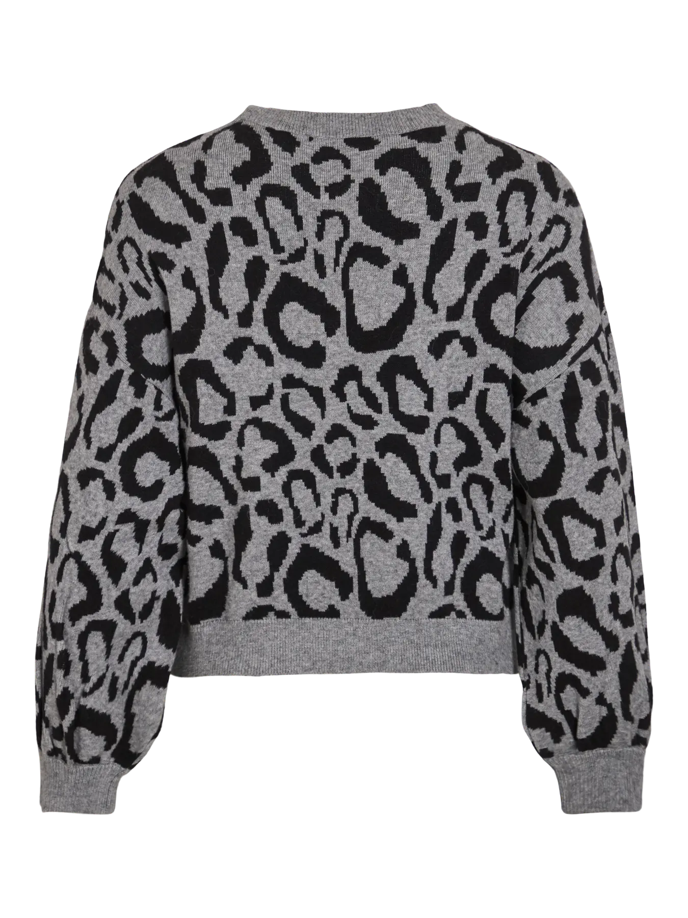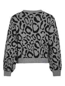 VILA TIP JACQUARD JUMPER IN GREY LEOPARD