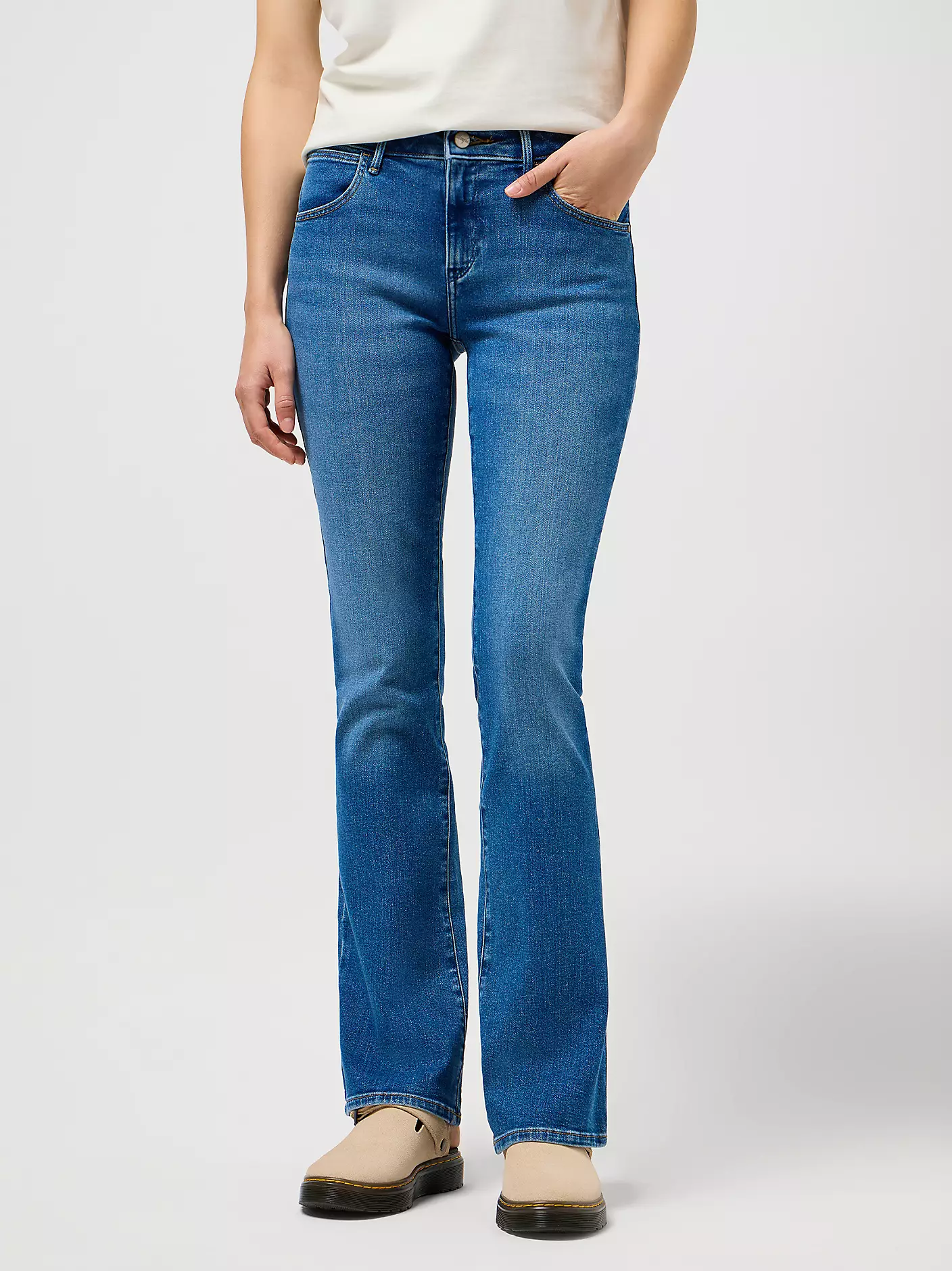 Complete your essential denim collection with our Wrangler bootcut jeans in medium-stretch blue denim. Designed with Body Bespoke® technology developed to fit and flatter curves in every shape and size.