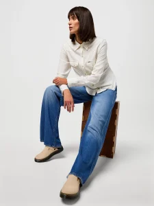 Discover the airy elegance of our WORLD WIDE jeans, featuring a wide leg silhouette that flares gently for a modern, relaxed aesthetic. Crafted from a harmonious blend of 50% LYOCELL and 50% VISCOSE, these light blue denim pants offer a soft touch with a sustainable edge. The faded wash effect on the thighs and knees adds character, while the contrast stitching and classic five-pocket design fuse timeless style with contemporary flair.