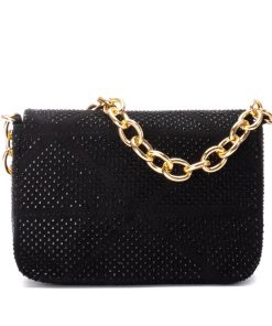 Xti women’s crossbody bag, a sophisticated accessory that combines elegance and functionality. Made from high-quality textile, its design is enhanced with rhinestone details that add a touch of shine and glamour. It features an elegant chain strap that adds a modern and chic style. With a clip closure. Its compact and practical size makes it the ideal accessory for any occasion. Measurements: 15 x 22 x 7 cm. This model has obtained vegan certification from the global organization PETA (Animal Rights Organization).