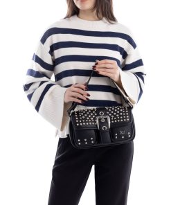 Women’s handbag from the XTI brand. Made of imitation leather, with a compact design and metallic stud details that add a modern and bold touch. Ideal for carrying just the essentials in style. Includes a shoulder strap. Clip closure. Measurements: 18 x 28 x 5 cm. This model has been certified vegan by the global organization PETA (Animal Rights Organization).