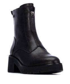 Elevate your style this season in these gorgeous ankle boots from XTI. The black faux leather upper features a front zip and sits on a heel offering height and comfort.