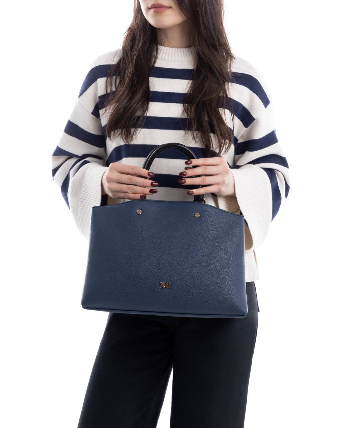 Women’s handbag from the XTI brand. Made of imitation leather, with an elegant design and clean lines. It includes a top handle and a removable shoulder strap, perfect for any occasion. It features a top zip closure and a lined interior with pockets. Measurements: 23 x 33 x 13 cm. This model has been certified vegan by the global animal rights organization PETA (Peta).